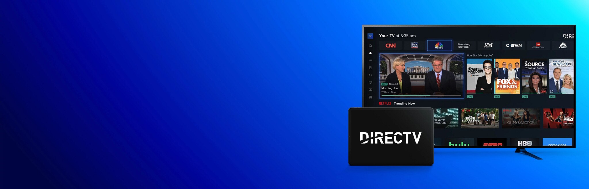 - Easily access live TV and thousands of streaming apps like Netflix, HBO Max, Prime Video and more - all from inside the DIRECTV experience*