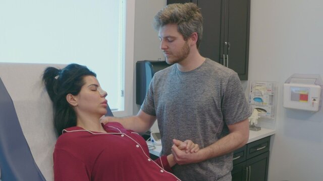 Larissa shows off her new body to her friends in a poolside reveal.