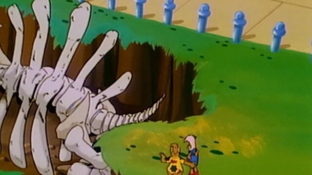 Neep steals dinosaur bones from the museum, and Gordon finds them buried in the yard.