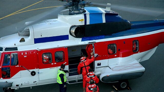 A helicopter carrying oil workers to an offshore drilling platform crashes.