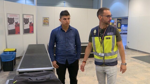 Un joven es demorado para inspección cuando se detectan irregularidades en su mochila. Un hombre en silla de ruedas atraviesa un exhaustivo control por su llamativo equipaje de mano, mientras que la mujer que lo asiste queda bajo sospecha.