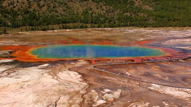 A wilderness jewel of vast forests and yawning valleys, Yellowstone is home to large bison herds, wolf packs and generations of grizzly bears.