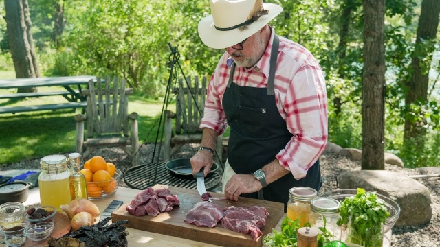 Chef Andrew Zimmern prepares Carne Adovada.