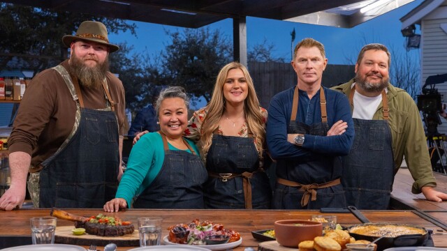 Bobby Flay battles to defend his BBQ Brawl crown against team captains Maneet Chauhan and Antonia Lofaso; Carson Kressley, Brooke Williamson and Rodney Scott return to judge the competition of live-fire cooking and other challenges.