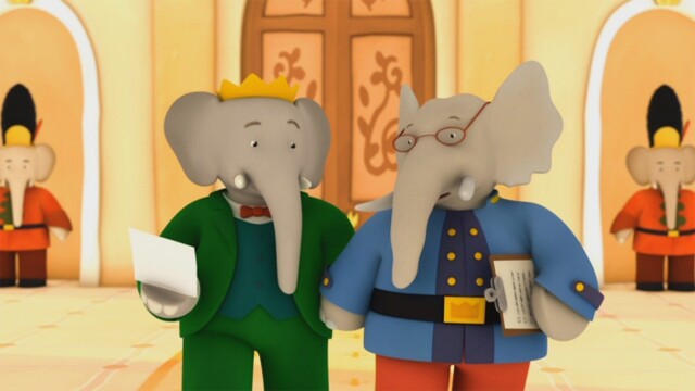 Badou planea un vuelo en globo para su abuelo, pero olvida anclar la soga. Ambos son arrastrados por el viento y se estrellan en el territorio de Sleek en la selva. Badou y Babar convierten el globo roto en una balsa y navegan a casa.