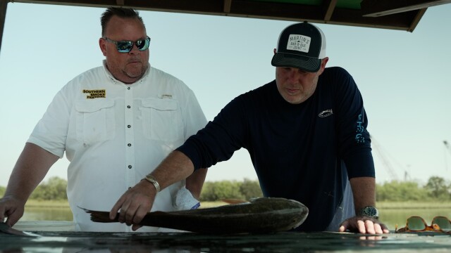 Pat visits Houston to go Gulf Bay fishing with chef Chris Shepherd, hoping to catch some redfish and gather a side of blue crabs.