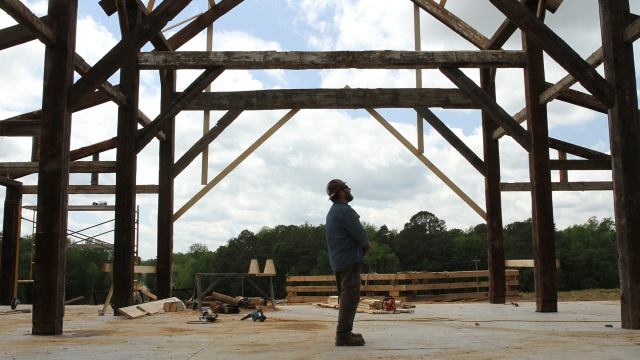 Mark and the guys travel to Patrick, S.C., to build a huge wedding pavilion, the biggest timber frame they've ever created; on a job this big, they need some extra help so they bring along Mark's latest hire and have fun teaching the new kid.