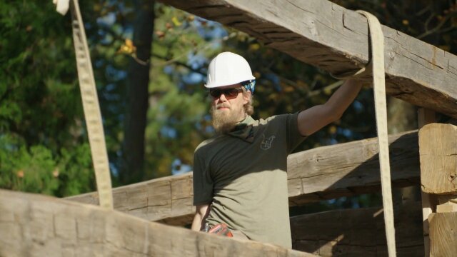 The Barnwood Builders stack a double pen log cabin on the shores of Lake Guntersville; working with their favorite designer, Karen Tillery, the guys help transform a 1970s ranch house into a rustic lakeside retreat.