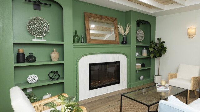 The competition heats up as the contestants take on their living rooms; the three teams consult with their mentors to showcase design elements they hope will give them an edge over the competition.