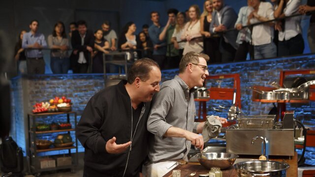 Chef Josh Capon and sports reporter Carolyn Manno team up to make sure Bobby Flay doesn't try for a trick play; Haitian chef Jouvens Jean takes on Francophile and Seattle restaurateur Bruce Naftaly to beat Bobby at his own game.