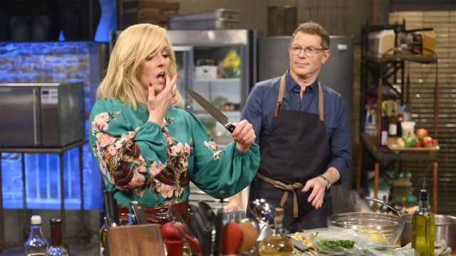 Actress Jane Krakowski teams up with Chef Michael Symon to steal Bobby Flay's spotlight; they bring in no-nonsense chefs Attila Bollok from Los Angeles and Matthew Spinner from Cleveland to give Bobby an early curtain call.
