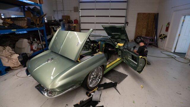 The client is on board with the chosen shade of green, and the car moves into the paint booth.