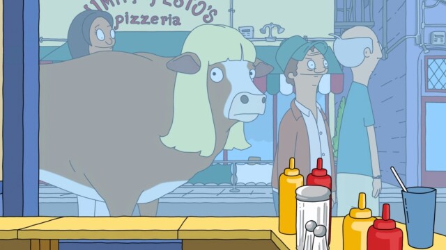 Bob is furious when a documentary filmmaker tries to makes a statement by placing a live cow outside the restaurant.