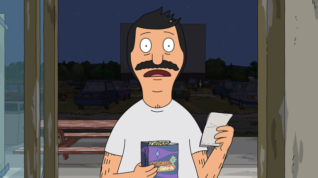 When the Belchers visit the local drive-in, Bob comes up with a plan to save the theater from closing; Linda accidentally insults another mom while on a group text chain; Louise and Gene hide from Tina after stealing some of her favorite candy.
