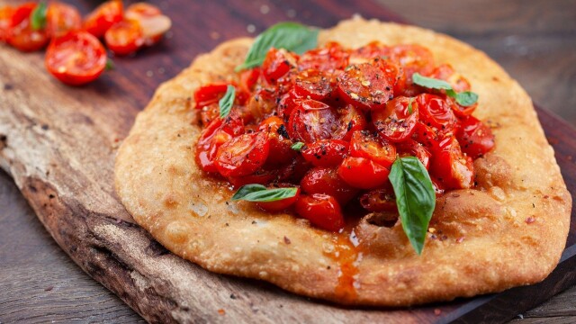 Known for its lush landscape, Umbria is a region of that offers fresh, seasonal ingredients perfect for simple-yet-boldly flavored cuisine; chef Michael Bonacini serves up a sweet and spicy antipasto of fried spicy tomato flatbread.