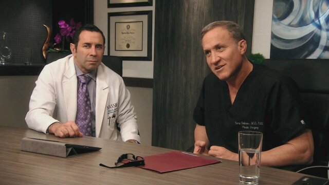 Former actress Heather battled a flesh eating disease that left her with no breasts; Dr. Dubrow aids a spiritual woman who has a butt on her belly; Dr. Nassif helps a man whose doctor left a thumb print on his nose.