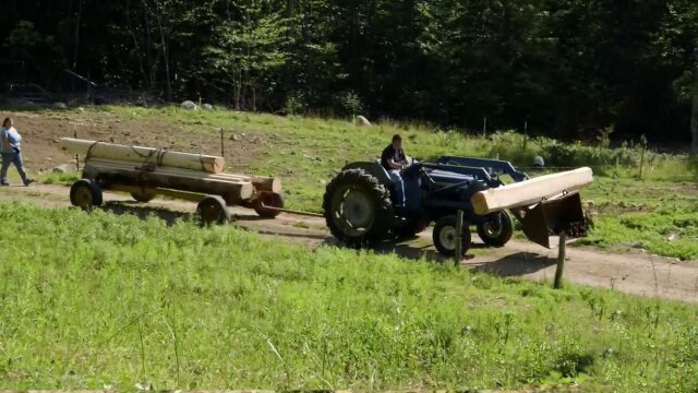Jason and Stephanie build a solar-powered dovetail log cabin; they live in a tipi onsite with their four children during the build, which gets hindered by driving rain, lost deliveries, broken equipment, and hurricane-strength winds.