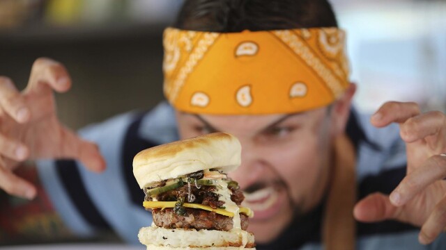 Sacramento County Fair in Northern Calif.; Asian-inspired Kanak Attack Burger; Richie has 24 hours to make his own version of their burger before going to a competition judged by fairgoers.