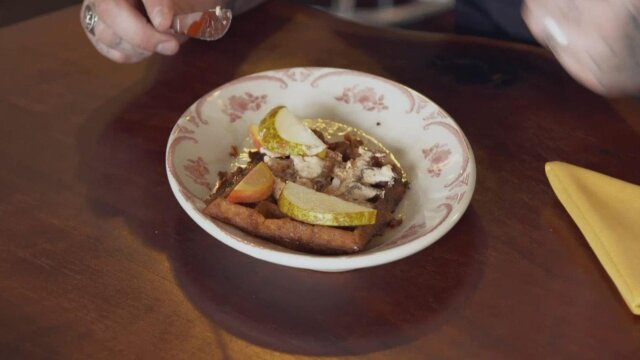 Ali visits Indianapolis and tries a decadent sourdough sugar pearl waffle breakfast and enjoys a house-cured sausage sandwich for lunch; a vegan key-lime cheesecake; a breaded pork tenderloin sandwich.