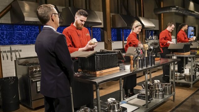 Chefs create wildly different appetizers from a basket that includes black garlic; a novelty candy in the second basket requires a hammer; competing flavors in the dessert basket leave chefs with some decisions to make.