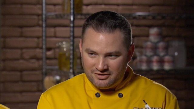 Four cooking duos compete; in the first round, the couples make appetizers that include date vinegar and chili-garlic-coated peas; the entree round basket contains a lively sea critter and sweet potato patties.