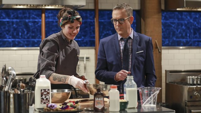 Four chefs set out to prove that ice cream can work well in two savory courses; a scoop sandwiched in the middle of an indulgent ingredient in the first basket; a unique ice cream flavor at the center of an unusual dish in the second basket.