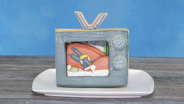 Ree Drummond and Eddie Jackson challenge four cookie makers to dream up their own Christmas movie and decorate a cookie poster for it; they create a vintage TV showing their favorite scene from the classic holiday film A Christmas Story.