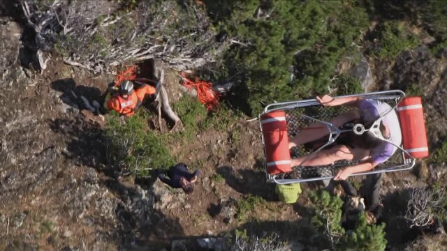 Vacationers are in trouble and need assistance; a fisher woman suffers severe abdominal pain; hikers are stranded overnight in extreme conditions; a man is injured in a biking accident.