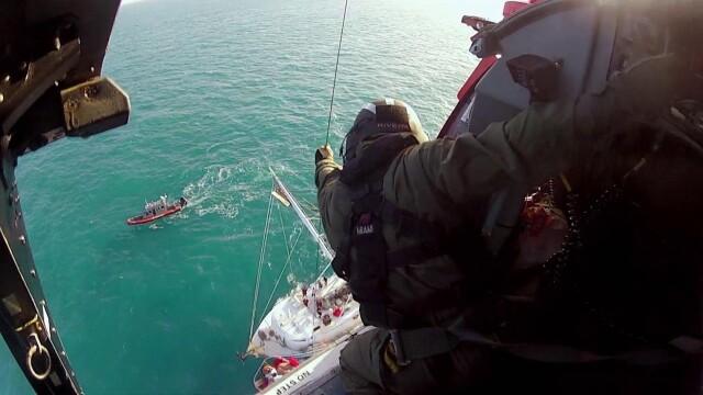 Air Station Miami races to save a man involved in a boating accident; the Clearwater Coast Guard faces challenging weather as they try to prevent a vessel from sinking; the Guards race to help a man who has cut off his thumb.
