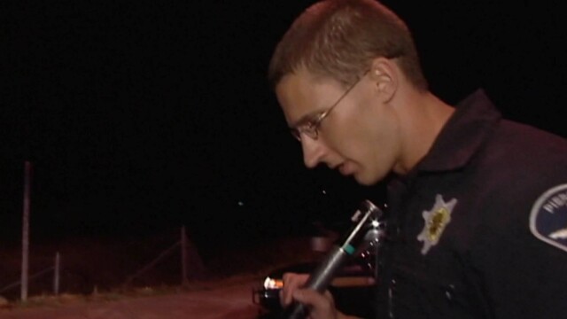 A dangerous car chase ends when a suspect rear ends a vehicle at an intersection, he is immediately apprehended; cops see men two men in a car late at night and as they approach the car they see a man put a bag in the center console.