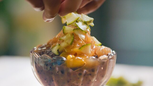 Japan's Fukushima farmers work to overcome radiation stigma; Sophia makes black rice pudding and peach compote; meeting a sommelier who says Fukushima's sake is nothing to fear.