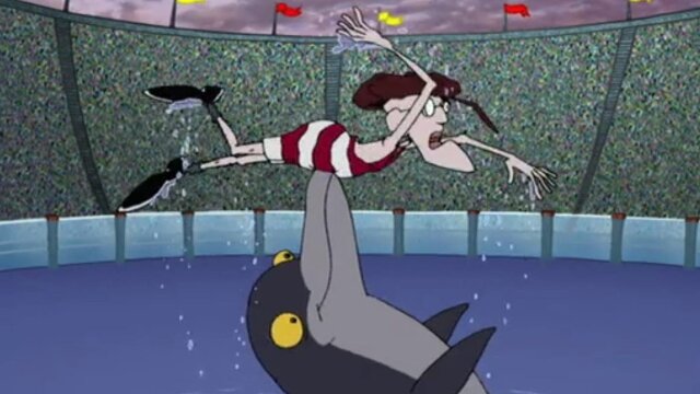 Eustace boasts that he can swim better than a dolphin; a human-eating dragon arrives at the farmhouse and eats Eustace.