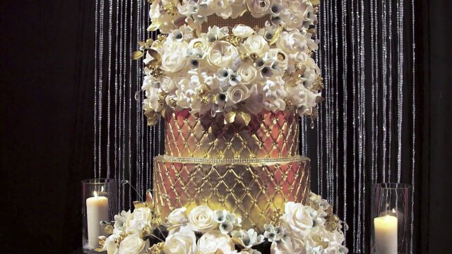 Bakers make penguins fly on a snowy cake filled with special effects; savory turns sweet when po' boys are made out of cake; Las Vegas bling is taken to another level with gold fondant and handmade sugar flowers; a movie camera cake with popcorn.