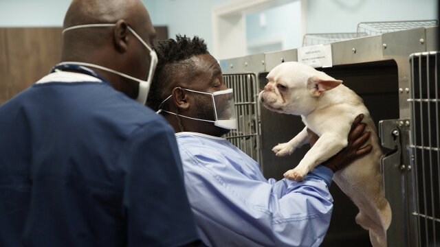 The doctors help Dr. Hodges and his French bulldog, Ghost.