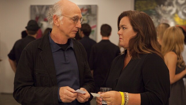 Larry competes with Rosie O'Donnell for the same woman; Larry refuses to have lunch with an acquaintance.