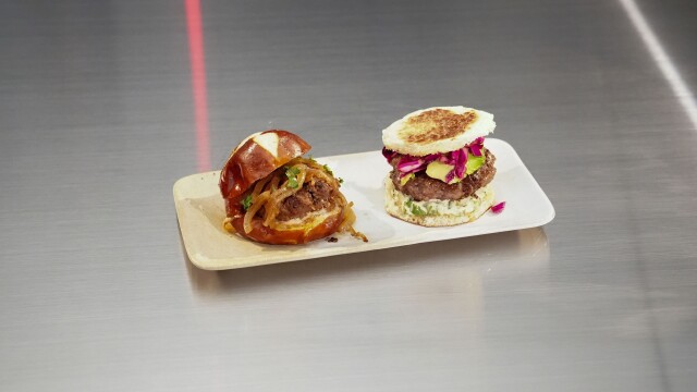 Brian Malarkey challenges the chefs to create a campsite slider feast in 30 minutes with limited ingredients, a single-burner camp stove and minimalist cooking tools; Maneet Chauhan selects one.
