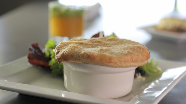 Guy Fieri's diving into scratch-made specialties; in Houston, there's a real-deal Italian pasta, plus a funky joint is putting out pizza topped with a surprising combo; a scenic spot in Hawaii is cooking up a comforting chicken pot pie.