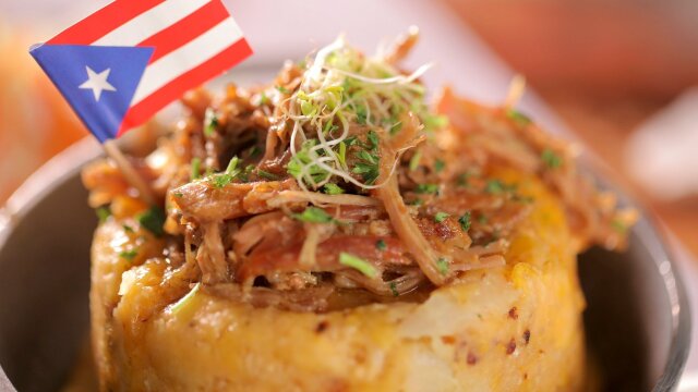 Guy Fieri's grabbing a little surf, turf, and flavors from the Earth; in Puerto Rico, a local gem is serving off-the-hook pork trifongo and shrimp empanadas; Guy finds a mushroom po' boy in Somerville, N.J., and outrageous octopus in Cleveland.
