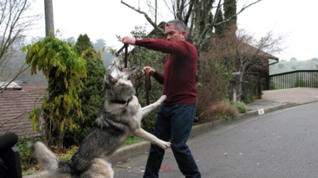 An Alaskan malamute exhibits aggressive tendencies; Cesar helps a professional dog walker with her clients.