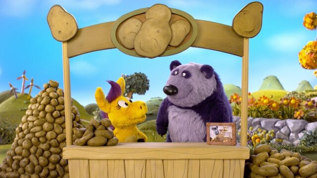 Donkey opens a potato stand so she can share her potatoes with her neighbors; Donkey surprises Clyde with a playdate in the sky.