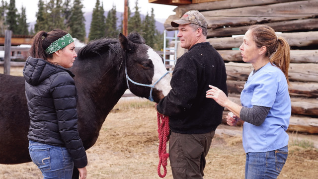 Everyone waits with bated breath as Dr. Oakley checks three mares for pregnancy.