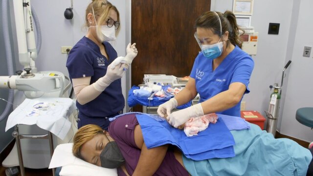 Elaine calls the growth on her love handle her third breast; Jessica's cyst is close to her eye and could be dangerous for Dr. Lee to remove; Dwayne wants his nose bumps removed, but he may not be able to make it through the pain of the procedure.