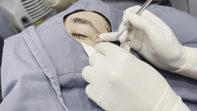 A patient with a cyst very close to his left eye seeks help from Dr. Lee.