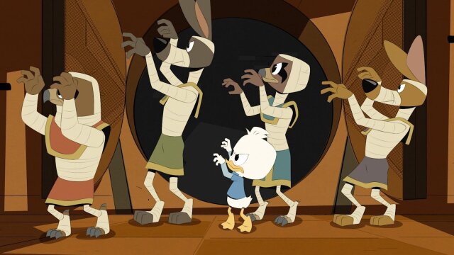 In a lost pyramid, Louie interprets a pharaoh's prophecy to his advantage, forcing Scrooge and Launchpad to convince a group of living mummies to rescue him.