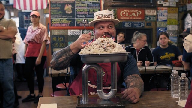 Strongman Eddie meets and eats gators roaming the Everglades, tests his grappling skills with WWE legends "The Headbangers," and tries to devour a kitchen sink full of ice-cream.