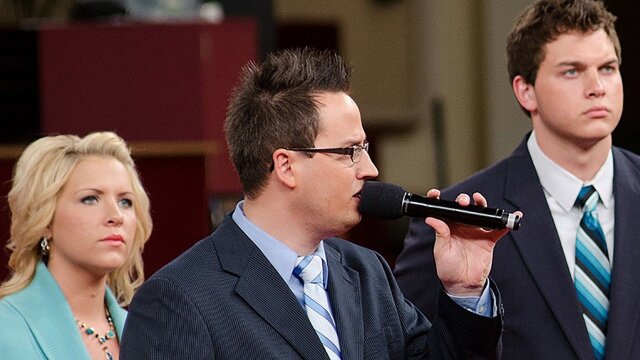Live gospel music recorded in Family Worship Center Church featuring Jimmy Swaggart and other singers.