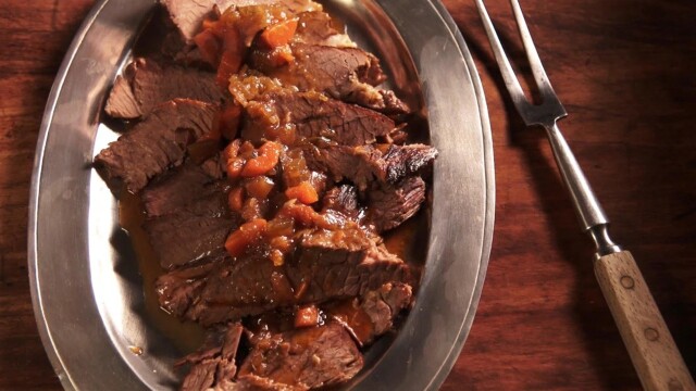 Beer braised beef; roasted garlic mashed potatoes; buttered peas; ice cream sundaes with homemade caramel bourbon sauce and crushed cookies and cream.
