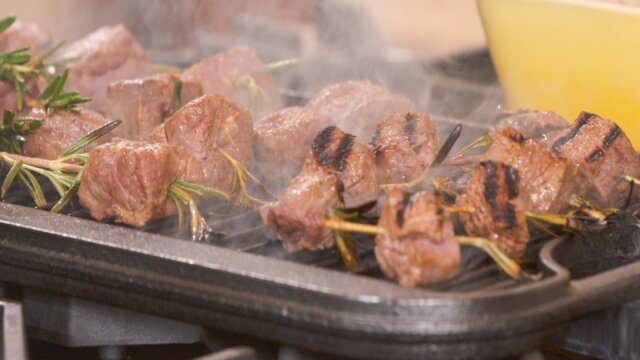 Nancy Fuller hosts a holiday party; crab cakes with zesty herb tartar; marinated beef tenderloin skewers with horseradish cream; ultimate cheese fondue dip station; Grammy Carl's popcorn balls; Nancy enjoys a champagne tower.