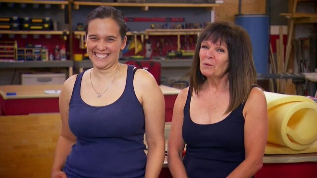 Dating flippers Kelly and Jay battle against designing friends Laura and Diane; bistro set, graphic design and a mash-up project.