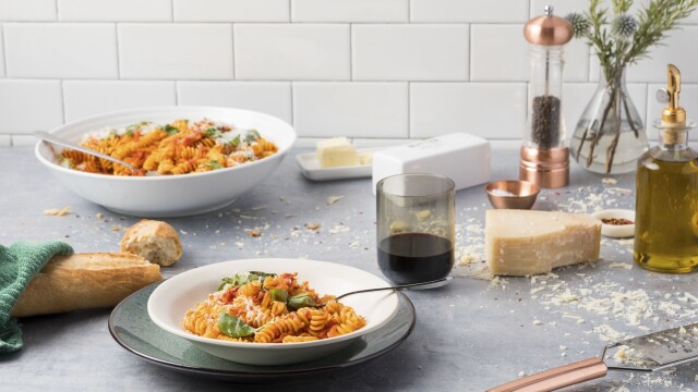 Alex Guarnaschelli adds red pepper flakes to her fresh marinara sauce to give this easy take on a weeknight classic a spicy kick.